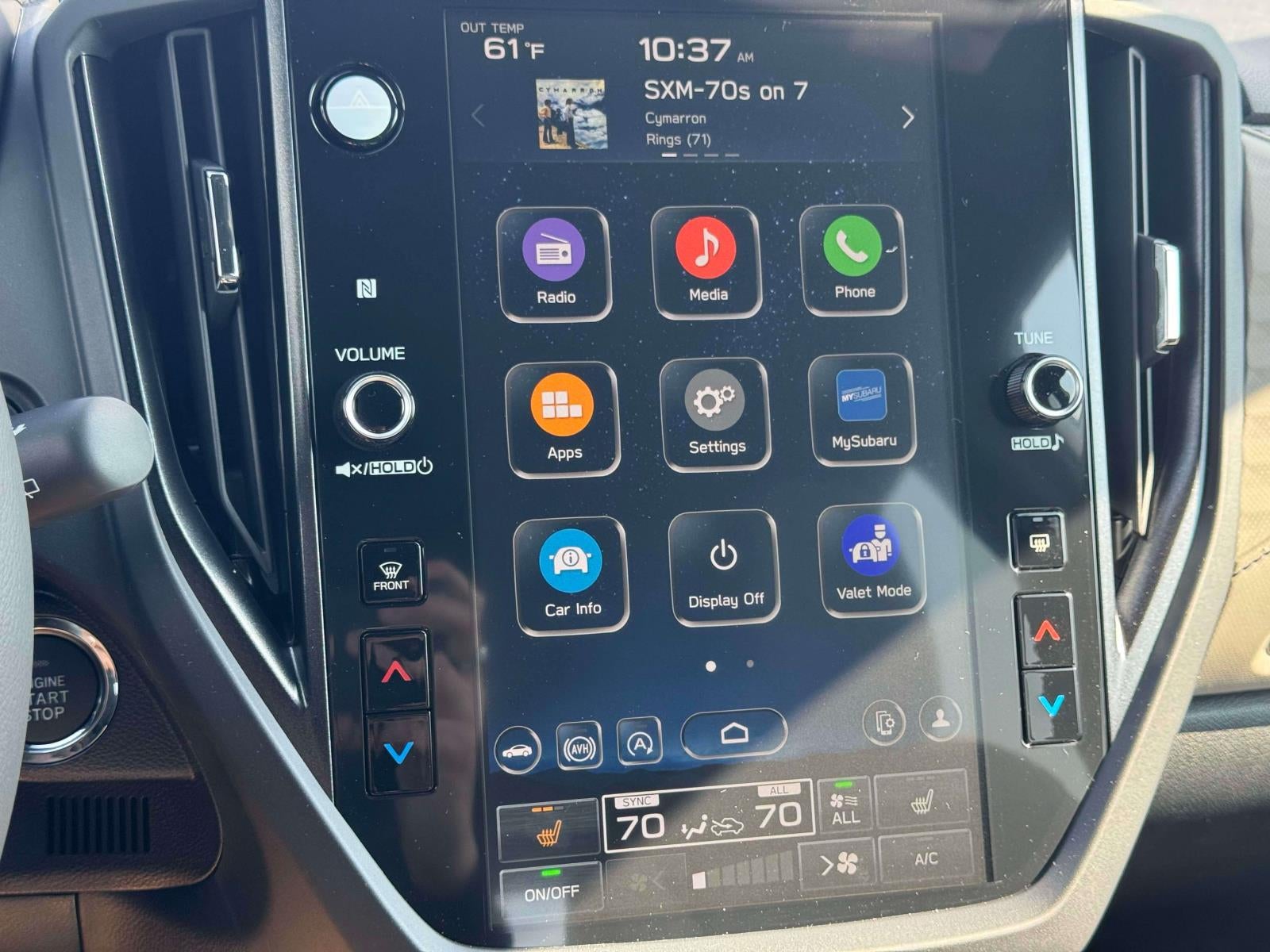 - Radio: Subaru 11.6" Multimedia Plus System -inc: valet mode, integrated center information display, AM/FM stereo HD Radio, multi-touch gesture high resolution display screen, voice activated controls, Bluetooth® audio streaming and hands-free phone connectivity w/SMS text messaging (refer to Subaru.com for cellphone compatibility), iPod control capability, smartphone integration: Android Auto and Apple CarPlay w/full screen view and wireless connection, SiriusXM satellite radio w/360L (free 4-month trial subscription included), USB and Over The Air (OTA) audio system update, steering wheel controls, 6 speakers, 3.5mm auxiliary input jack and roof mounted audio and satellite antenna