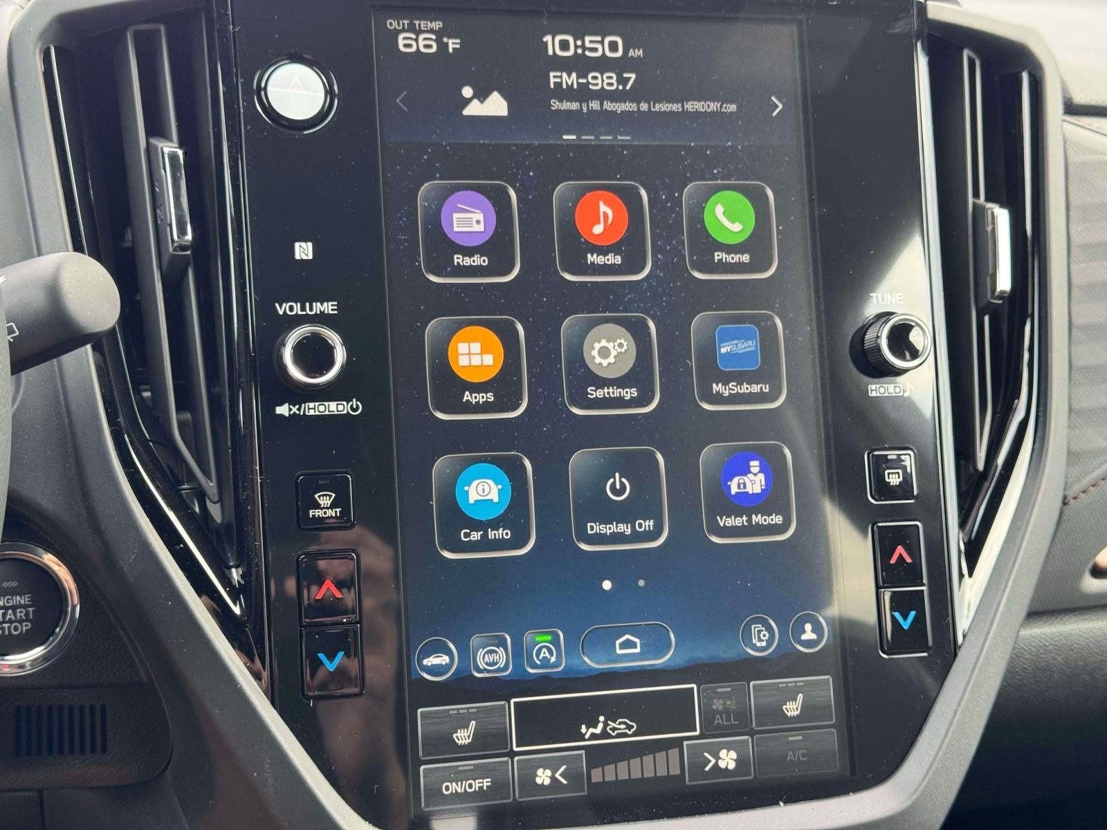 - Radio: Subaru 11.6" Multimedia Plus System -inc: valet mode, integrated center information display, AM/FM stereo HD Radio, multi-touch gesture high resolution display screen, voice activated controls, Bluetooth® audio streaming and hands-free phone connectivity w/SMS text messaging (refer to Subaru.com for cellphone compatibility), iPod control capability, smartphone integration: Android Auto and Apple CarPlay w/full screen view and wireless connection, SiriusXM satellite radio w/360L (free 4-month trial subscription included), USB and Over The Air (OTA) audio system update, steering wheel controls, 6 speakers, 3.5mm auxiliary input jack and roof mounted audio and satellite antenna