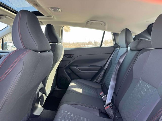- Radio: Subaru 11.6" Multimedia Plus System -inc: valet mode, AM/FM stereo, HD Radio, multi-touch gesture high resolution display screen, voice activated controls, Bluetooth® audio streaming and hands-free phone connectivity, Bluetooth® hands-free SMS text messaging connectivity, iPod control capability, smartphone integration: wired and wireless Android Auto w/full screen view, wireless Apple CarPlay w/full screen view and wireless connection, USB and Over The Air (OTA) audio system update, audio system and Bluetooth® steering wheel control switches, 6 speakers (2 dash panel tweeter, 2 front door, 2 rear door), illuminated 3.5mm auxiliary input jack, illuminated USB A and C input charge ports, roof mounted satellite and connected services, roof mounted black antenna, connected services operation indicator, SOS emergency assistance (red button) and ehanced roadside assistance (blue i-button)