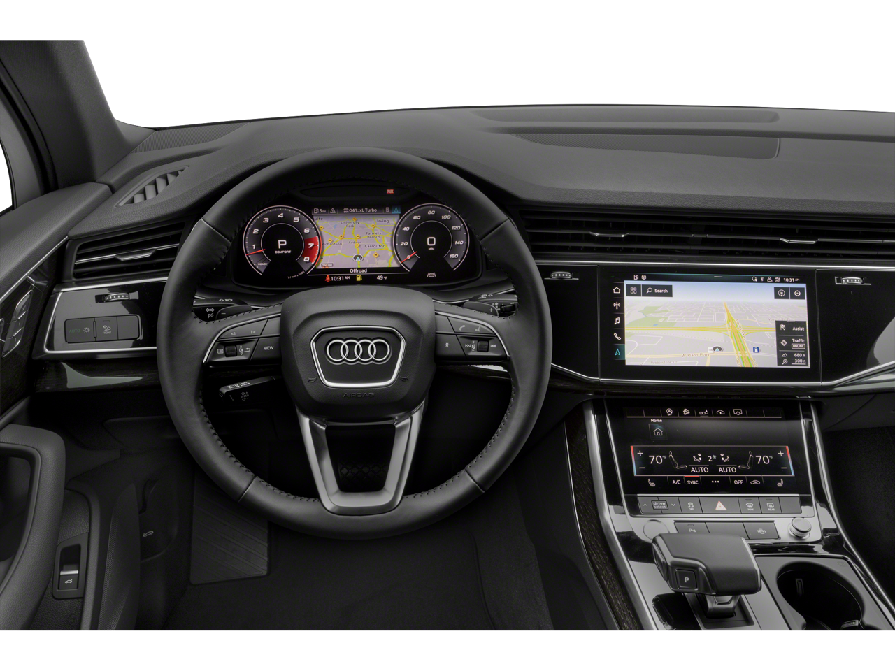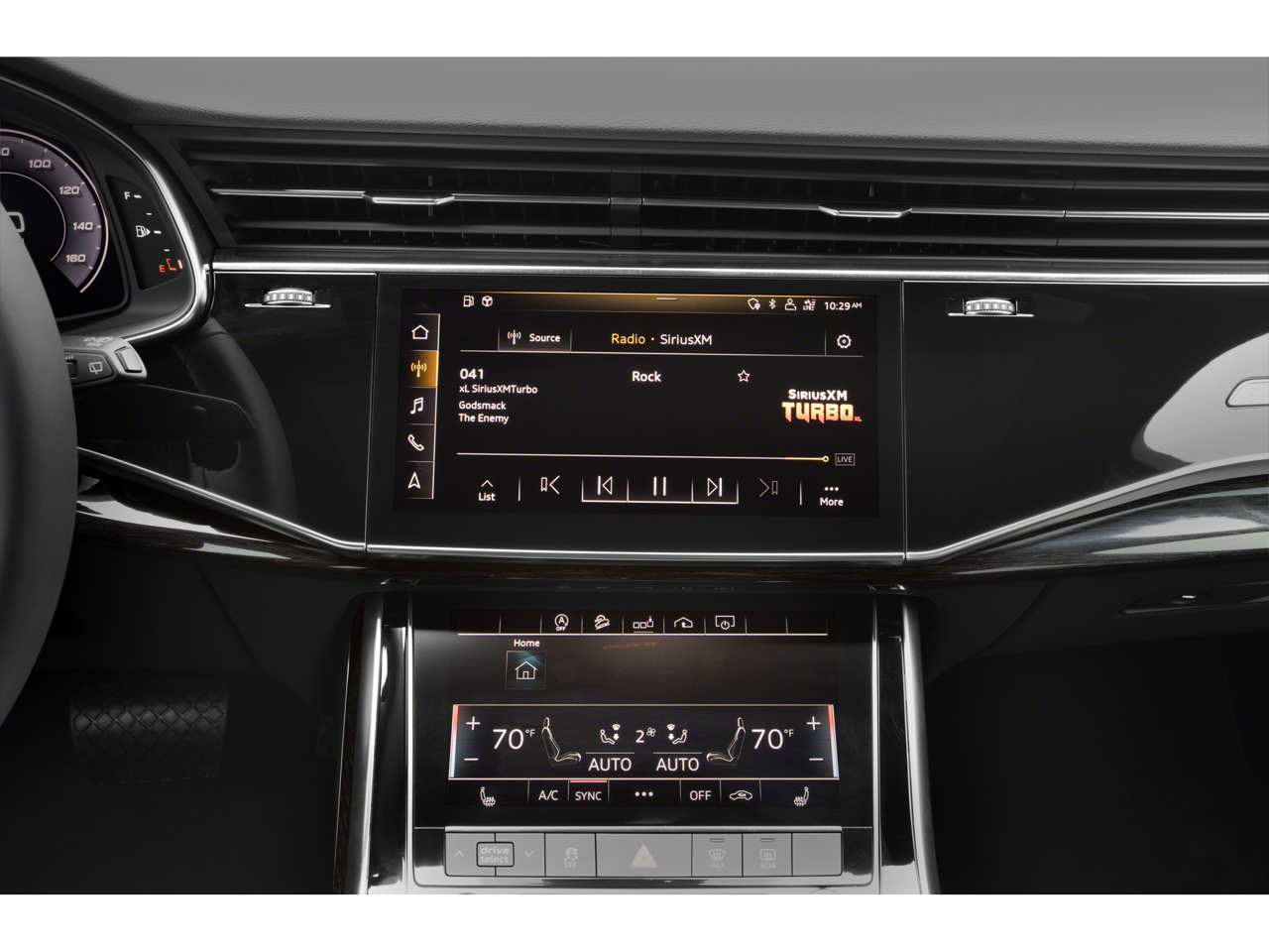 - Radio: Audi Sound System -inc: Audi smartphone interface (wired Android Auto and wireless Apple CarPlay), MMI navigation plus w/MMI touch response - 10.1" upper, 8.6" lower screen, preparation for mobile phone (Bluetooth®) and SIRIUS Satellite Radio (w/3-month complimentary subscription)